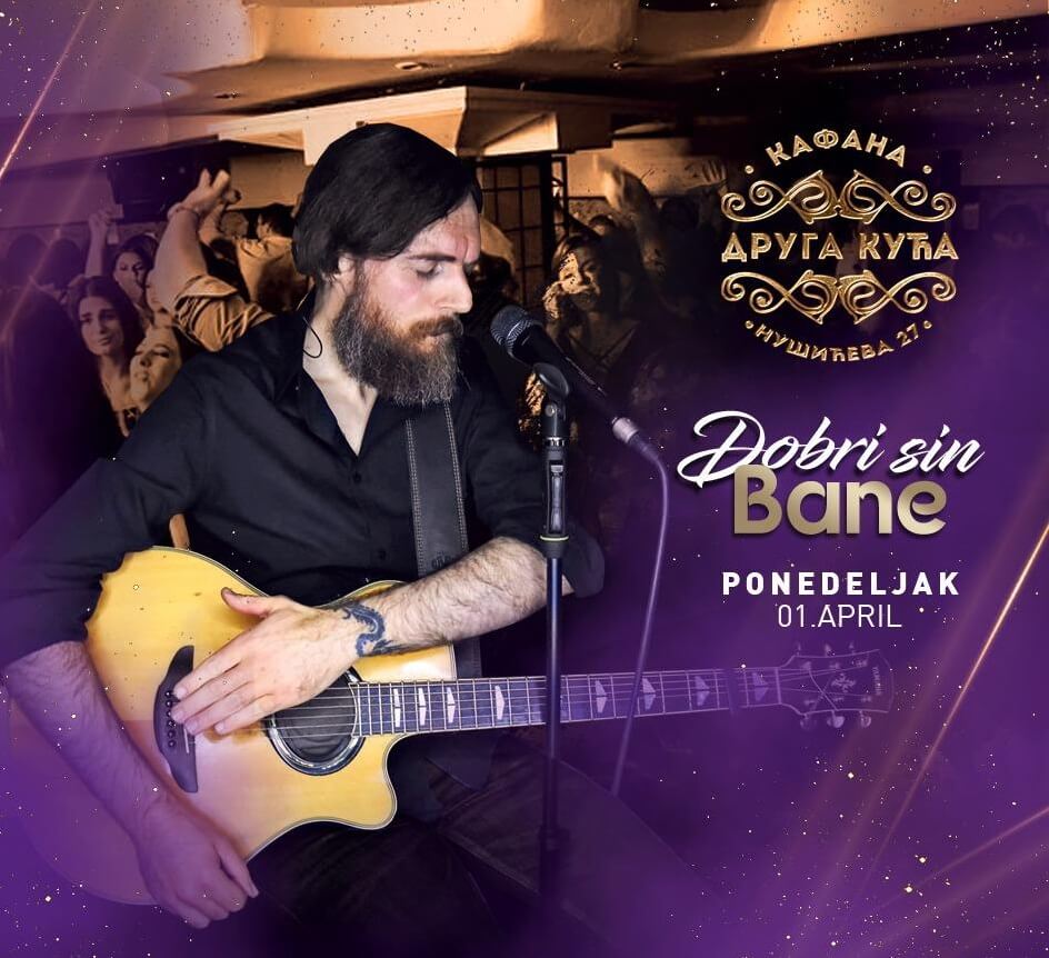 Ne propustite naredna neponovljiva dešavanja! Rezervacije možete izvršiti putem našeg korisničkog Call Centra 063 33 33 44 ili 063 34 34 33 ili Online. Ukoliko ste raspoloženi za fenomenalne svirke onda je kafana Druga Kuća idealno mesto za vas! U ponedeljak 01.04. zabavljaće nas Dobri Sin Bane! Naoružajte se osmehom i pozitivnom energijom i vidimo se ovog ponedeljka u kafani Druga Kuća! Rezervacije su besplatne, ali obavezne. Ukoliko nas budete redovno pratili uvek ćete prvi saznati sve najbitnije informacije vezane za noćni život Beograda.