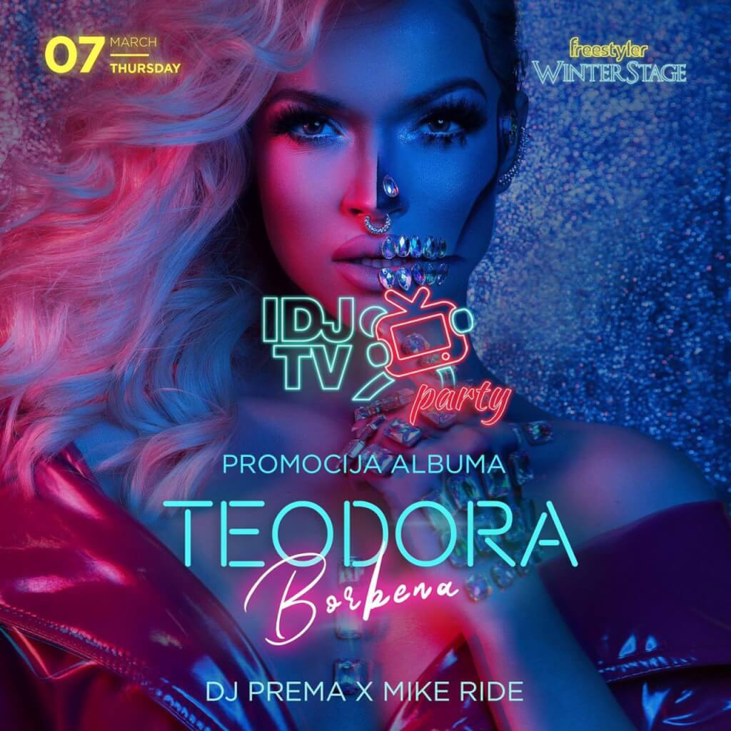 Rezervacije za četvrtak veče i najbolji provod u gradu u klubu Freestyler Winter Stage možete izvršiti putem našeg korisničkog Call Centra 063 33 33 44 ili 063 34 34 33 kao i Online. Mesto gde je najbolji provod uvek zagarantovan - jer mi smo sa vama već 18 godina! Ponesite dobro raspoloženje i uživajte u dobrom provodu do jutra! Ovog četvrtka veče najvećih IDJTV hitova i sjajna Teodora promoviše svoj novi album Borbena. Rezervišite svoje mesto na vreme! Rezervacije su besplatne, ali obavezne.