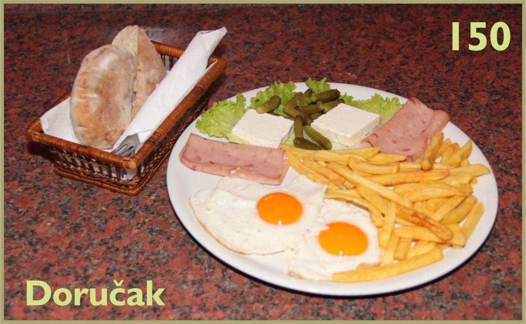 Svaki dan imate doručak za 150 dinara, piletina na žaru za 250 dinara, fileti soma za samo 200 dinara. Pored toga do 13h imate doručak i palačinku za samo 200 dinara.